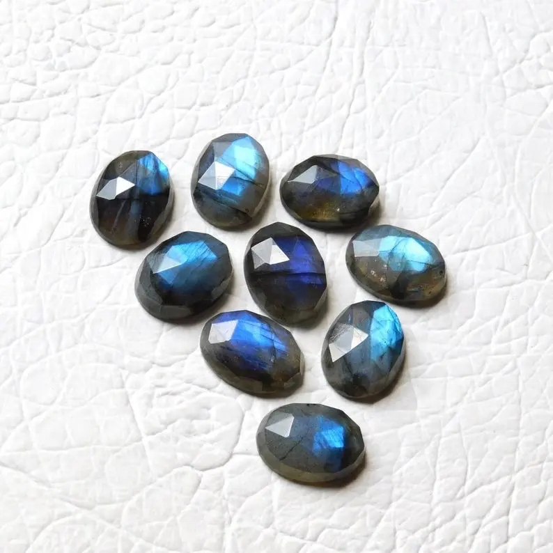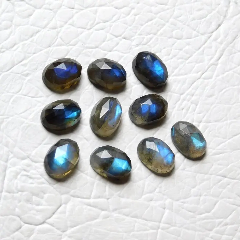 เครื่องประดับอัญมณีทำมือรูปวงรีทรงไข่ลายกุหลาบไฟลาบราดอไรต์สีฟ้าธรรมชาติขนาด6x8มม.
