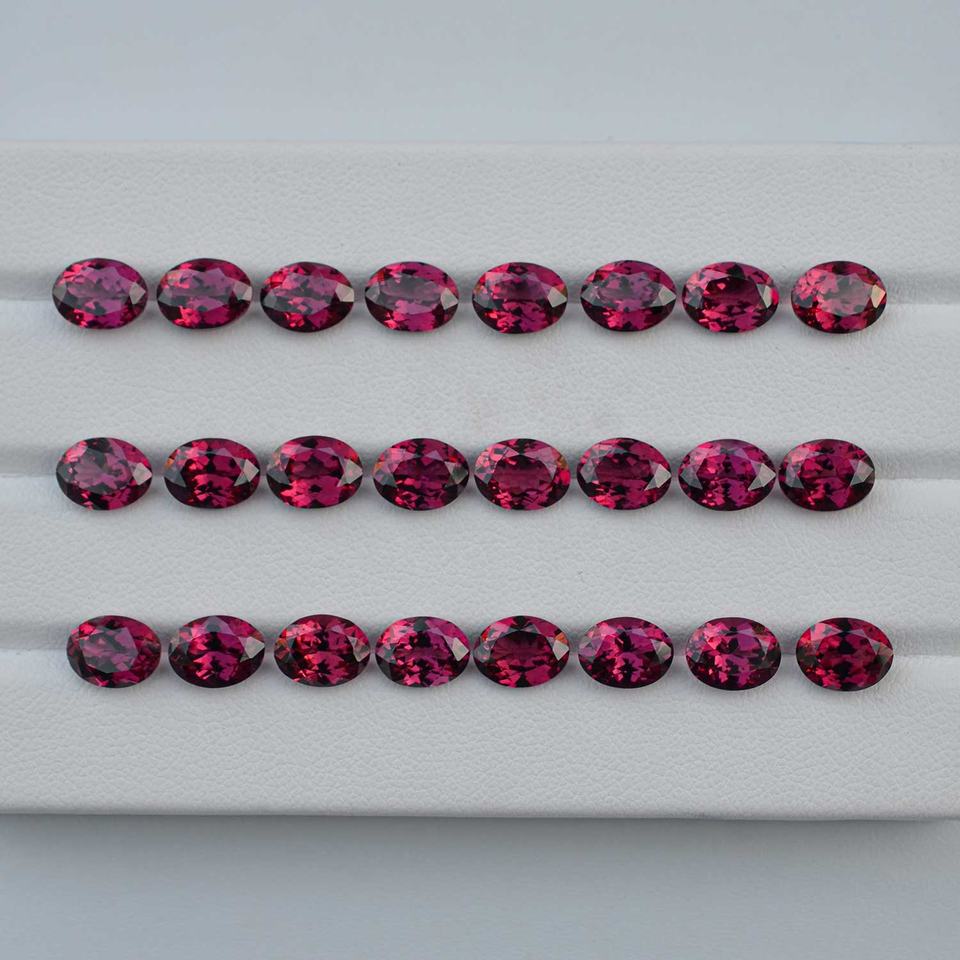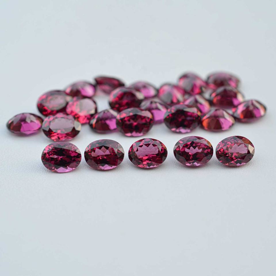 พลอยแกรนเนตอัมบาลไลต์ธรรมชาติขนาด 6x8 มม. รูปทรงวงรี พลอยกึ่งมีค่าจากมาลาวี สีม่วงแดงอมชมพู ประกายไฟ สำหรับทำเครื่องประดับ กำลังเป็นที่นิยม