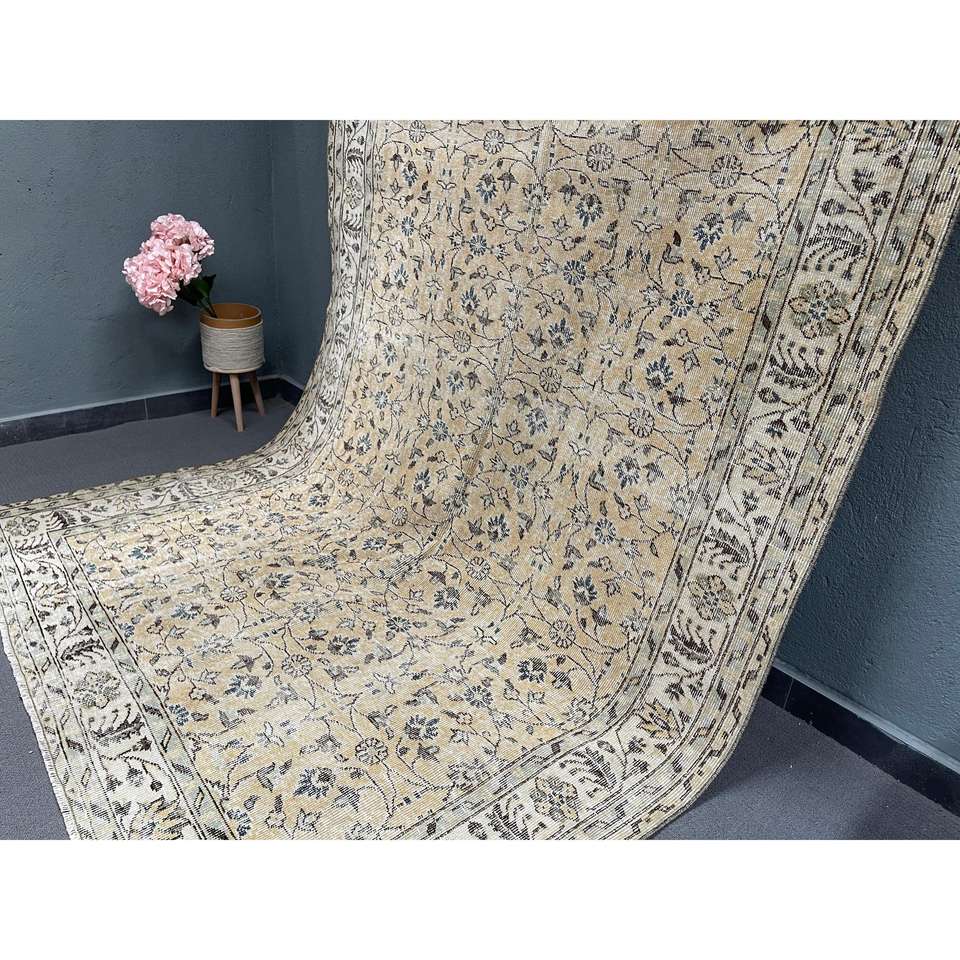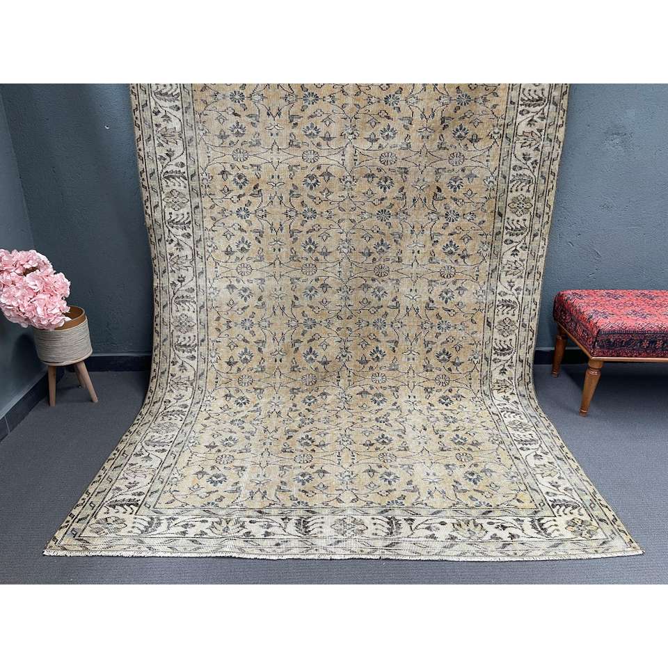 พรมตุรกีวินเทจขนาด 6x9.3 ฟุต พรมขนาดใหญ่ พรมสีน้ำตาลสไตล์ตะวันตกเฉียงใต้
