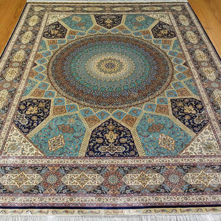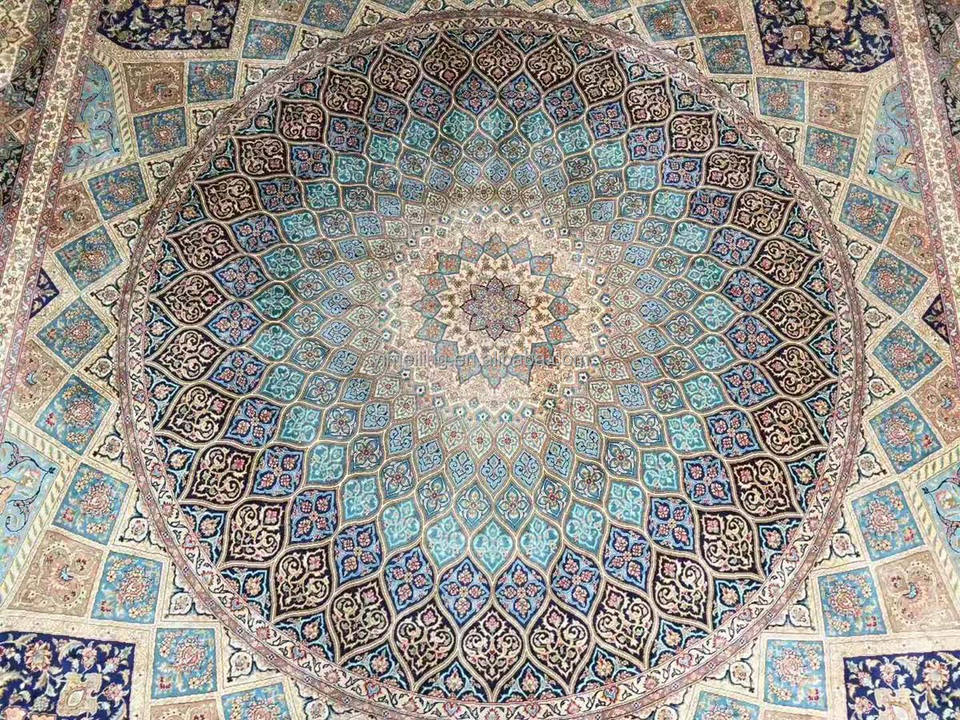 พรมเปอร์เซียผ้าไหม100% คุณภาพสูงขนาด6x9x12พรมเปอร์เซียดีไซน์ทรงโดมสำหรับห้องนั่งเล่นคฤหาสน์