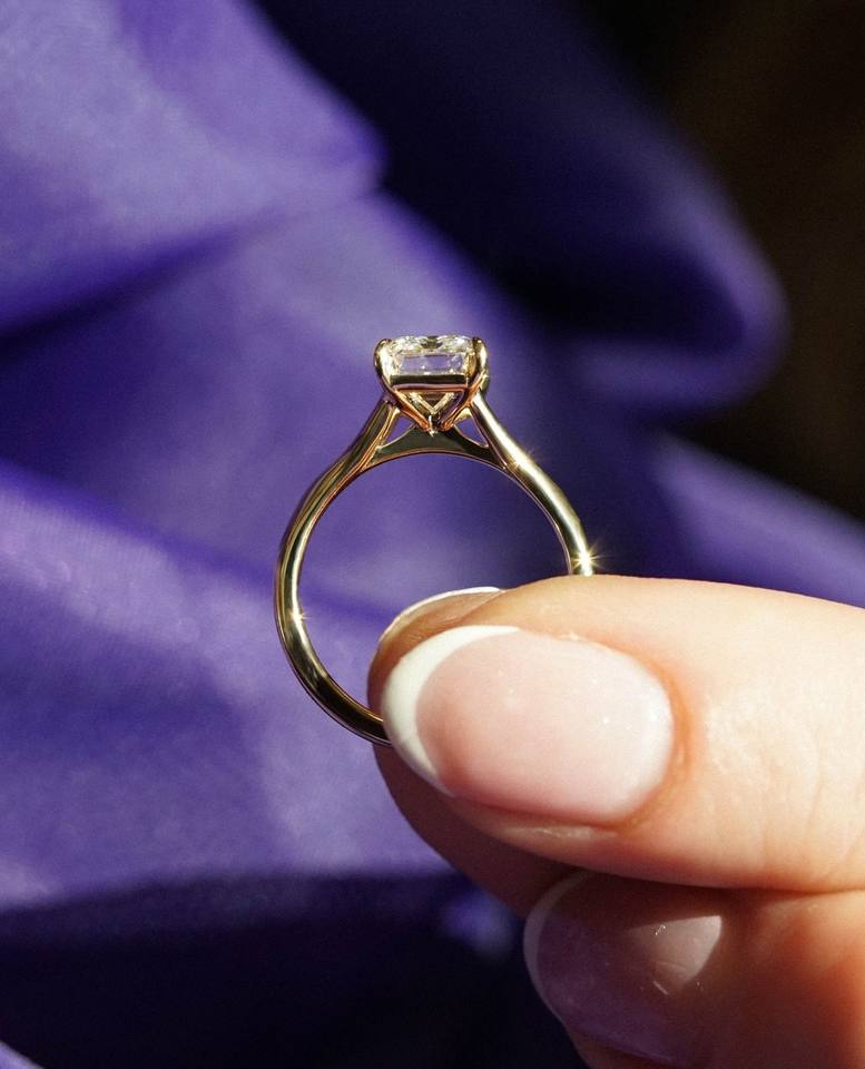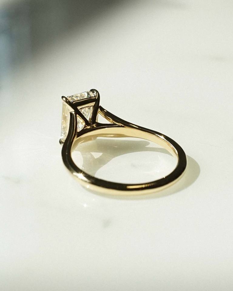 แหวนเพชรโมอิสซาไนต์ทรงเหลี่ยมขนาด 6x9 มม. แบบโซลิแตร์ พร้อมวงแหวนแบบแยกส่วน ชุบทองคำเหลือง สำหรับเป็นเครื่องประดับหมั้น
