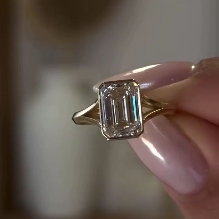6x9มม. มรกตตัดแหวนเพชร CZ แหวนหมั้นวงแหวนแยกกรอบสีเหลืองทองชุบ925เครื่องประดับเงินขายส่ง