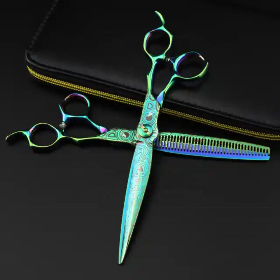 กรรไกรตัดผมดามัสกัสสีเขียวขนาด7.0นิ้วกรรไกรตัดผมสำหรับมืออาชีพ