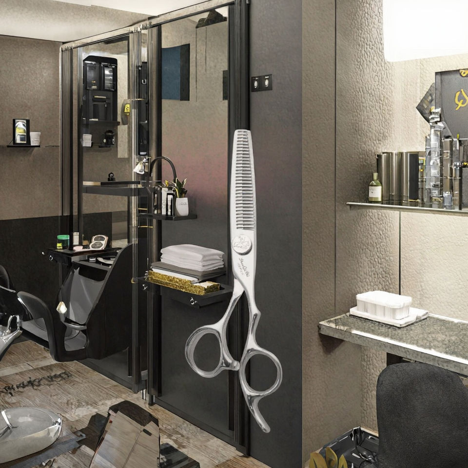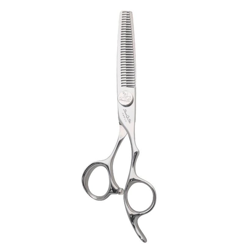 กรรไกรซอยผมสแตนเลสขนาด 7.0 นิ้ว สีเงินคมกริบ ระดับมืออาชีพ 32 ซี่ สำหรับคนถนัดขวา ใช้ในงานเสริมสวยและตัดผม