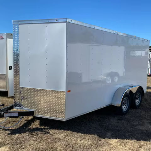รถพ่วงบรรทุกสินค้าแบบปิดสีขาว ขนาด 7-14 ฟุต