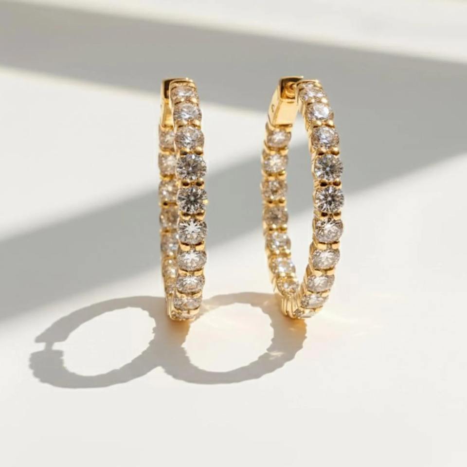 ต่างหูเพชรทรงห่วง 7.28 กะรัต เพชรเลี้ยงในห้องปฏิบัติการ ทองคำแท้ 14K เครื่องประดับชั้นดีสำหรับผู้หญิง-ของขวัญและโอกาสงานเลี้ยง