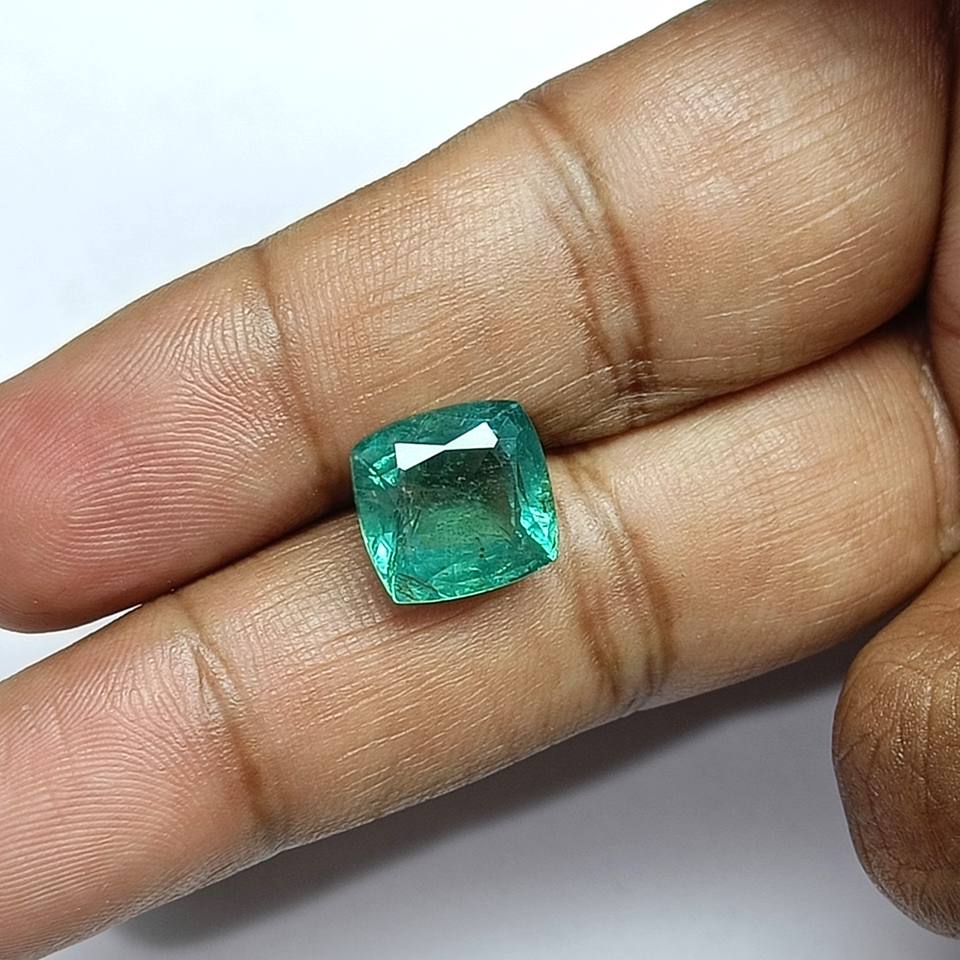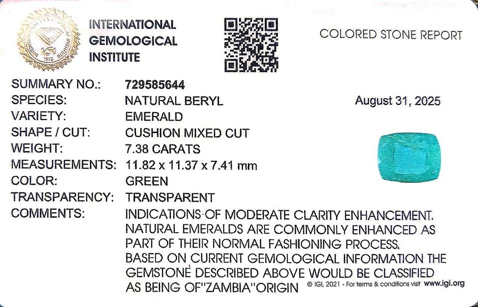 มรกตสีเขียวทรงคุชชั่น 7.38 กะรัต จากแซมเบีย จากร้านขายอัญมณี ราตติ ชาร์ท 8.25