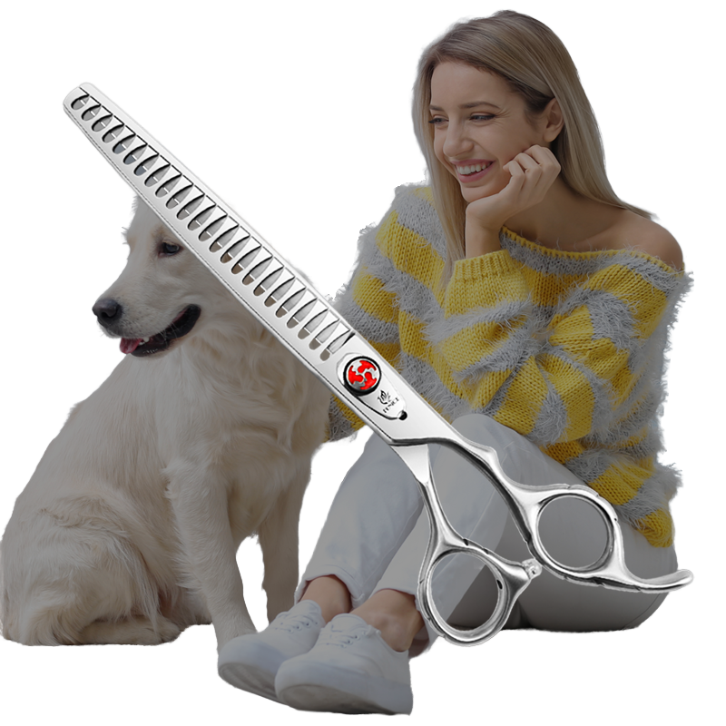 กรรไกรตัดแต่งขนสัตว์เลี้ยงแบบพกพา7.5นิ้วอัตราการทำให้ผอมบาง70% วัสดุสเตนเลสสำหรับตัดขนสุนัข
