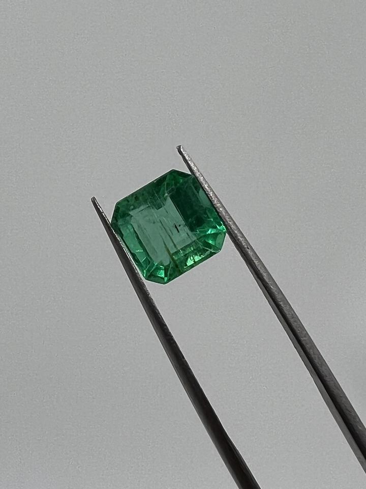 มรกตธรรมชาติขนาด 7.5 x 7.5 มม. ไม่ผ่านการปรับแต่งและไม่ผ่านการอบอุ่น คุณภาพดีมาก เกรดพรีเมียม ทรงเหลี่ยมแบบแอสเชอร์ น้ำหนัก 1.94 กะรัต สำหรับทำเครื่องประดับ