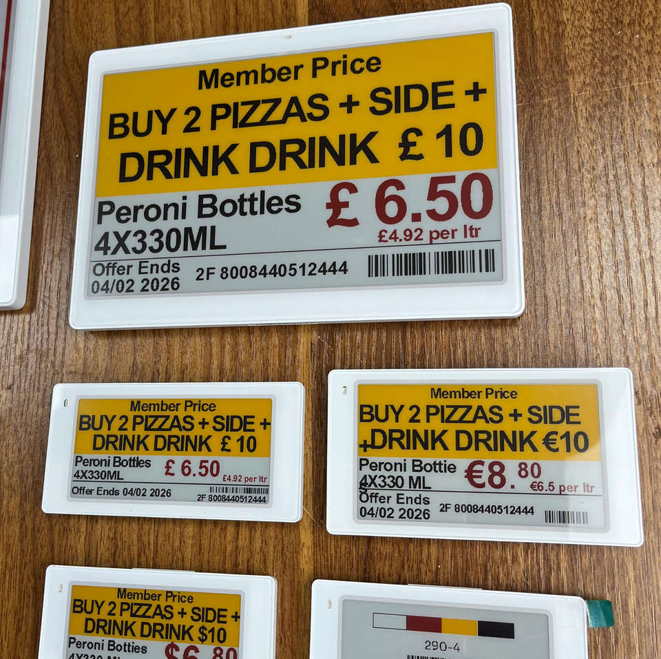 ป้ายแสดงราคาสินค้าอิเล็กทรอนิกส์ในคลังสินค้า