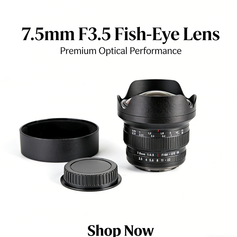 เลนส์ฟิชอาย 7.5 มม. F3.5 ฟูลเฟรม APS-C 200 ° แท่นยึดกล้องหลายตัว FOV