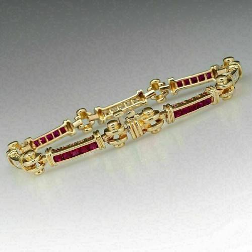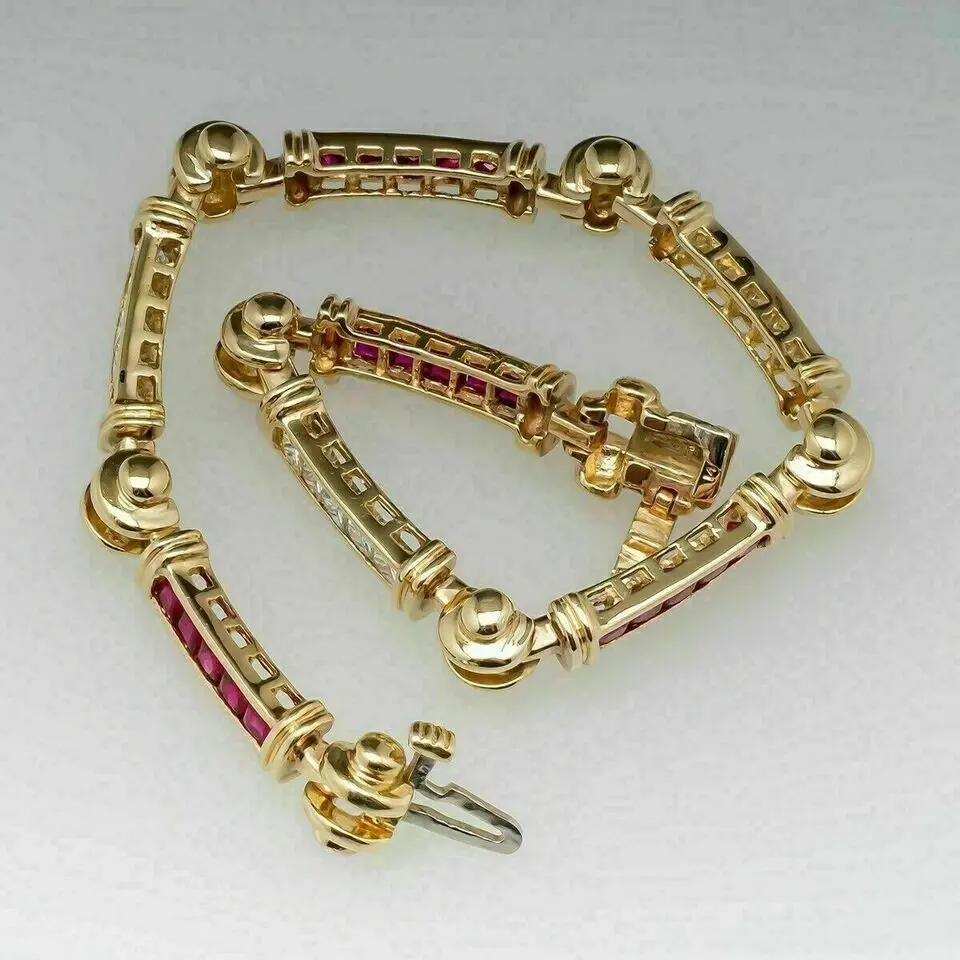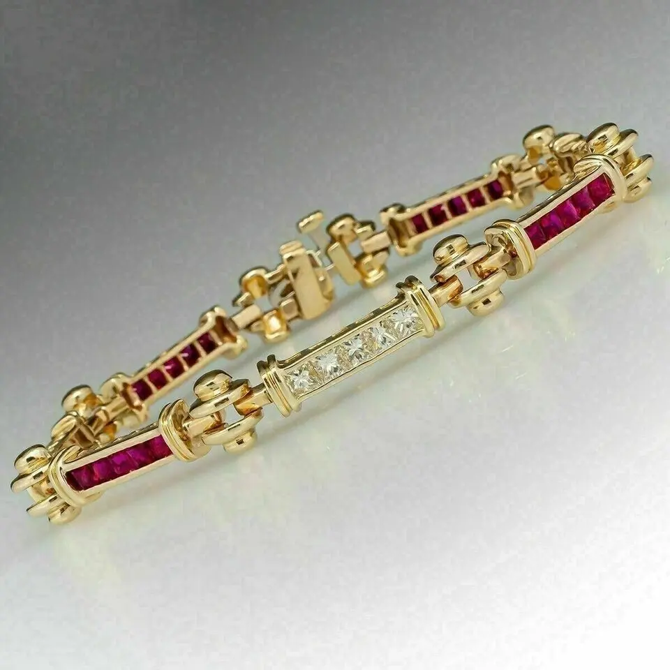 สร้อยข้อมือเทนนิสชุบทองคำขาวประดับเพชรทรงเจ้าหญิง 7.69 กะรัต สำหรับผู้หญิง สไตล์วินเทจ