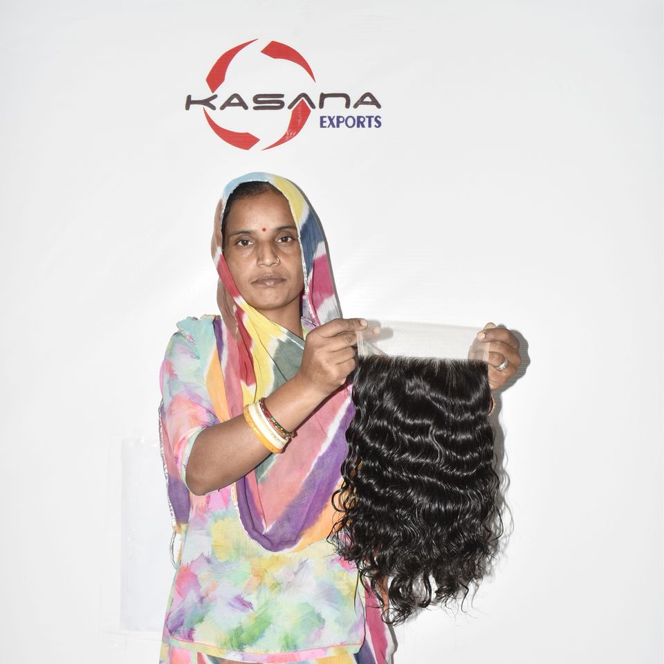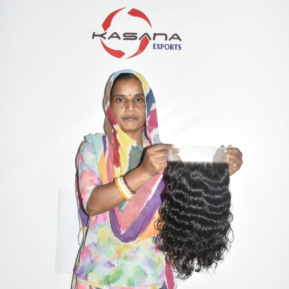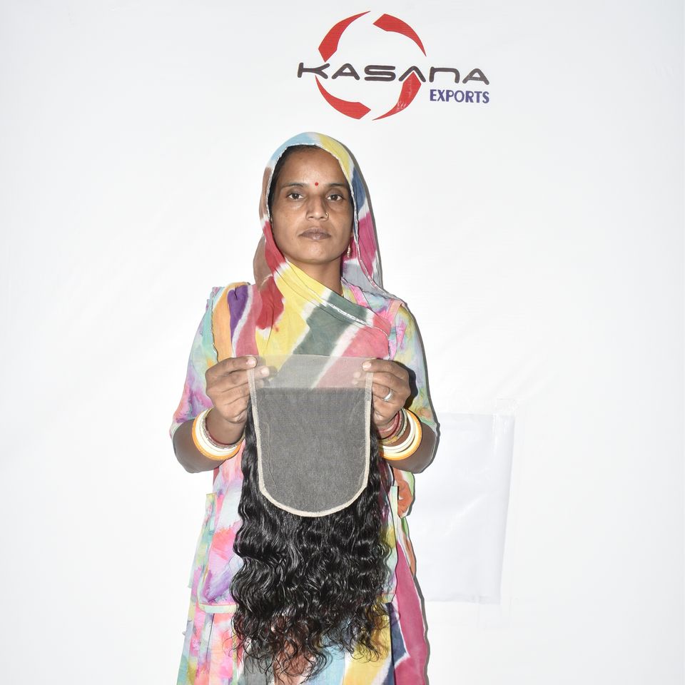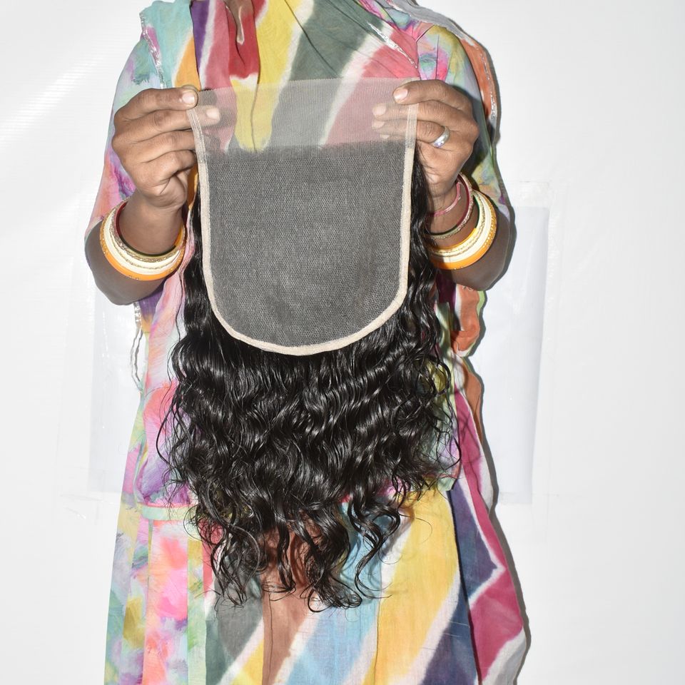 ผมแท้ธรรมชาติอินเดียแบบเวอร์จิ้น 7*7 จัดเรียงเกล็ดผม ถักสองชั้นด้วยเครื่องจักร สีดำ สำหรับผู้หญิง แบบลอน ไม่ผ่านการแปรรูป