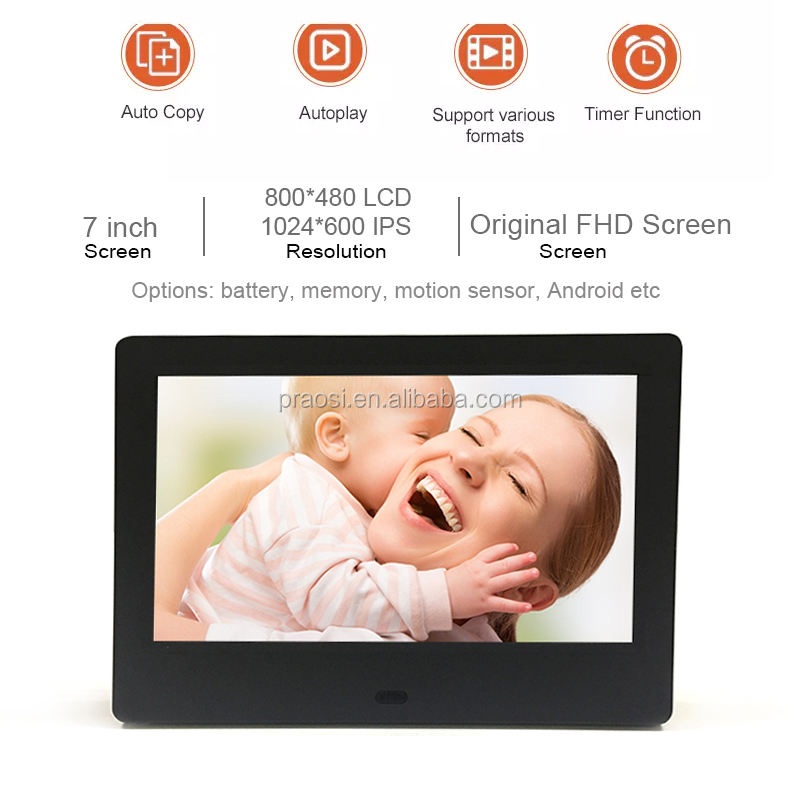 กรอบรูปดิจิตอลขนาด 7 8 10 12 15 17 19 22 25 32 นิ้ว พร้อมหน้าจอ LED เล่นวิดีโอได้ และนาฬิกา วัสดุอะคริลิก