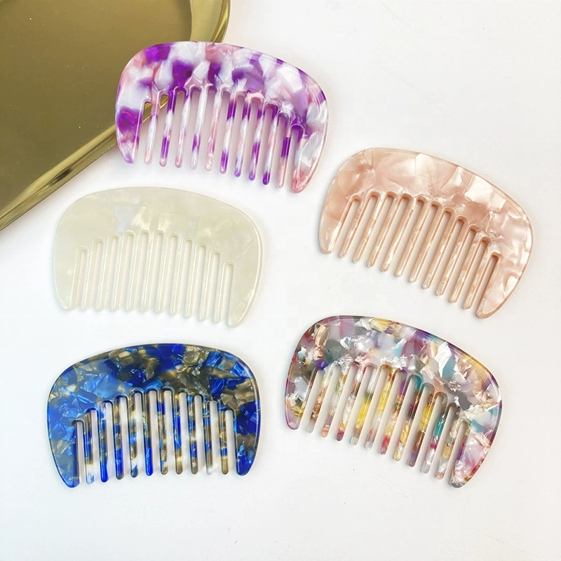 แปรงหวีผมและหวีซี่กว้างลายกระดองเต่าอะซิเตทขนาด 7.8 ซม. พร้อมลายพิมพ์วินเทจและโลโก้แบบกำหนดเอง