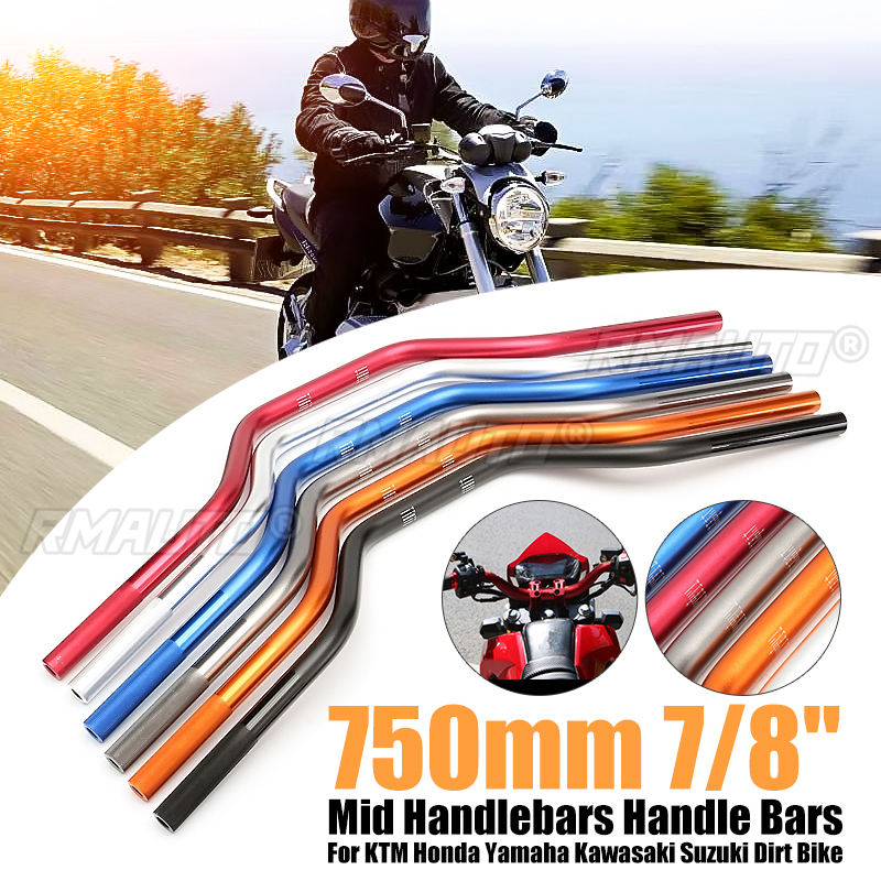 แฮนด์มอเตอร์ไซค์แบบ Drag Bar ขนาด 7/8 นิ้ว 22 มม. สำหรับ Honda, Yamaha, Kawasaki, Suzuki และรถวิบาก