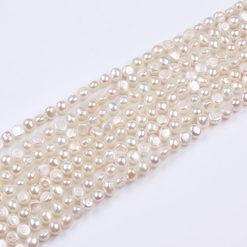 ไข่มุกน้ำจืดทรงบาร็อคสองด้าน ขนาด 7-8 มม. รูด้านข้าง แบบกึ่งสำเร็จรูป ขายส่ง สำหรับงานประดิษฐ์