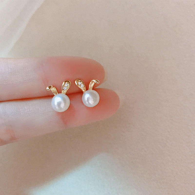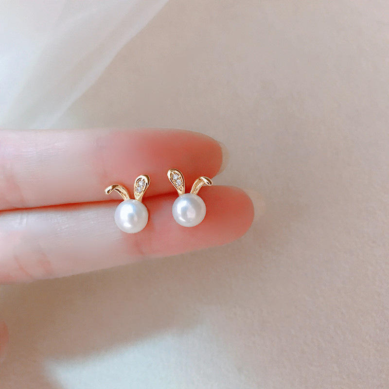 ต่างหูมุกน้ำจืดทรงแบน 7-8 มม. สำหรับผู้หญิง เครื่องประดับหู ดีไซน์เฉพาะตัว รูปกระต่าย เงินแท้ ประดับมุก สวยสง่า
