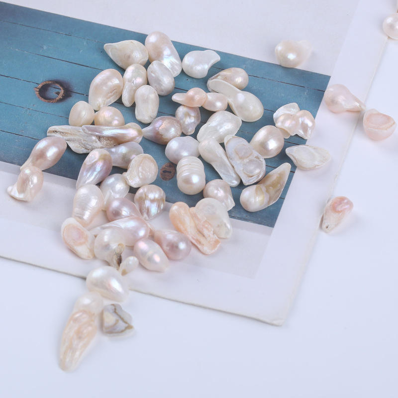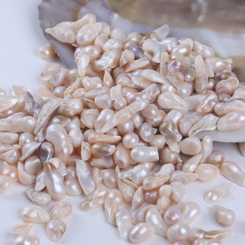 ไข่มุกน้ำจืดทรงบาร็อคสีขาว ขนาด 7-9 มม. ไข่มุกธรรมชาติแบบหลวม ไม่มีรูพรุน พร้อมเปลือกกาวแบบไม่มีรูพรุน