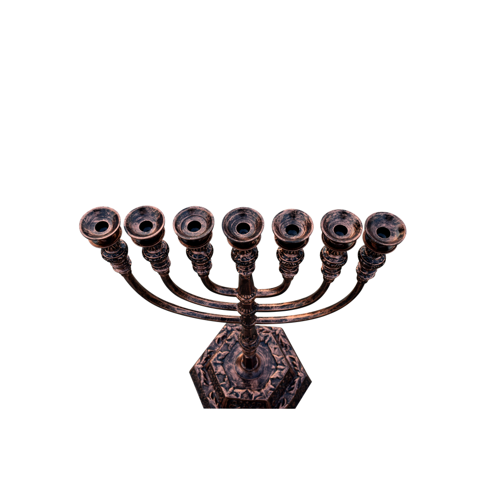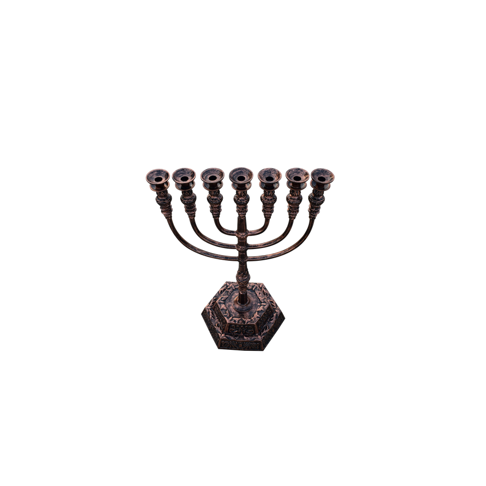 เชิงเทียนทองแดงโบราณ 7 กิ่ง สำหรับวัดในเยรูซาเล็ม เชิงเทียนยิว 7 กิ่ง ของตกแต่งโบสถ์