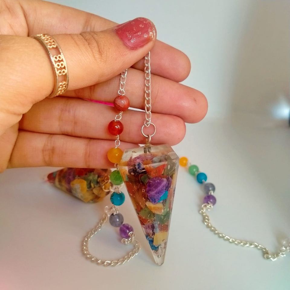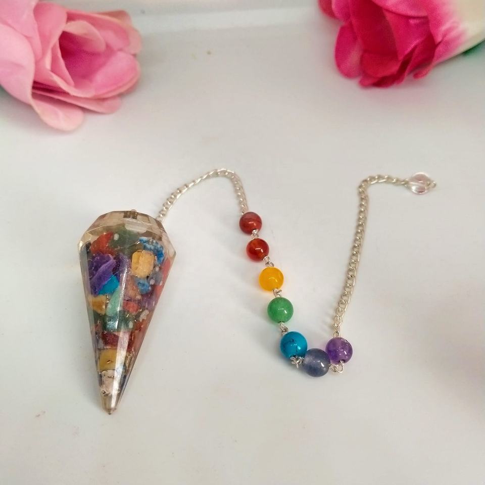 7จักระออร์โกเน่จุดลูกตุ้มที่มีเจ็ดโซ่จักระ Dowser Dowser reiki จักระรักษาลูกตุ้มฮวงจุ้ย