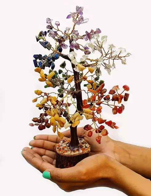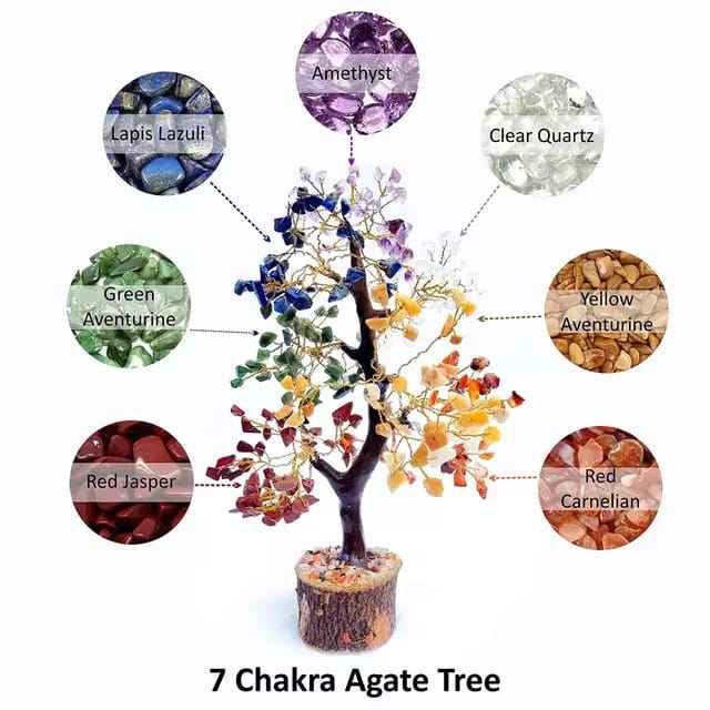 หินคริสตัลบำบัด7ต้นจักระ,ของตกแต่งเสริมฮวงจุ้ยหินเรกิบอนไซหินนำโชค