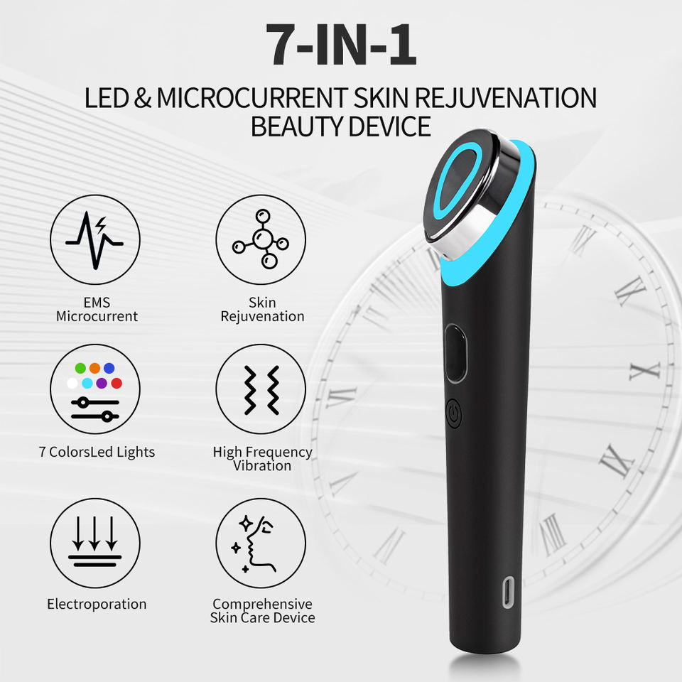 เครื่องนวดหน้าไมโครเคอเนตไฟฟ้า7สีอุปกรณ์เสริมความงามกำจัดริ้วรอยอุปกรณ์ดูแลผิวด้วยแสง