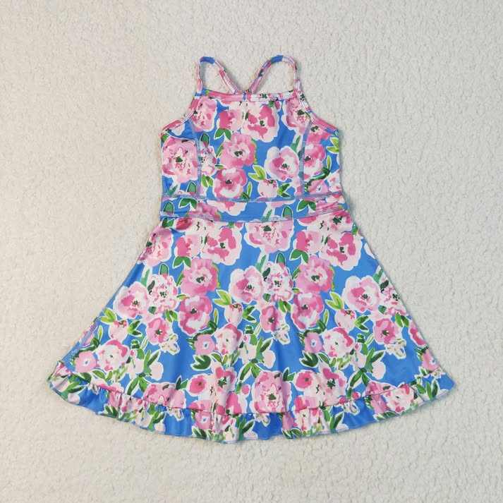 ชุดเดรสเด็กผู้หญิง 7 สี ลายดอกไม้ แขนกุด สำหรับฤดูร้อน สไตล์โยคะ ชุดกีฬาสำหรับเด็กผู้หญิง