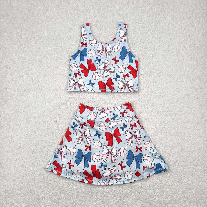 ชุดเสื้อผ้ากีฬาสำหรับเด็กผู้หญิง 7 สี สำหรับฟุตบอล เบสบอล เชียร์โยคะ เสื้อ กางเกงขาสั้น กระโปรง