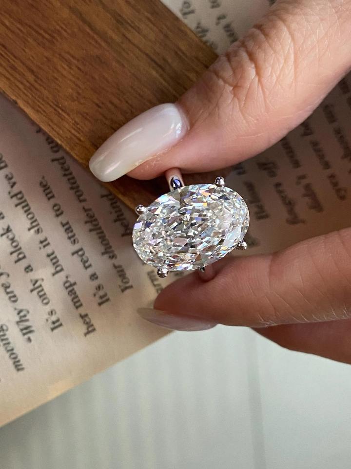 แหวนเพชรทรงรี 1 กะรัต เพาะเลี้ยงในห้องปฏิบัติการ ฝังแบบหนามเตย ได้รับการรับรองจาก IGI ความใส VVS2 ทองคำขาว 14K ดีไซน์เรียบหรู แหวนหมั้นเพชรเม็ดเดี่ยวสุดหรู