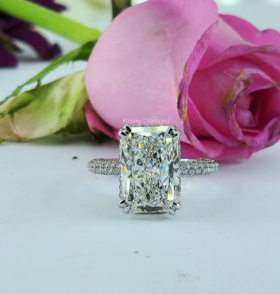 แหวนเพชร CVD แบบซ่อนขนาด7 CT ตัดสว่างสว่างสว่างสดใสได้รับการรับรองของขวัญครบรอบสำหรับเธอ