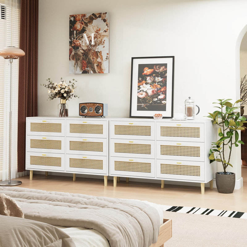 ตู้เสื้อผ้าหวายสไตล์โบโฮ7ลิ้นชักเฟอร์นิเจอร์ห้องนอนทำจากไม้ธรรมชาติสไตล์โบฮีเมียน