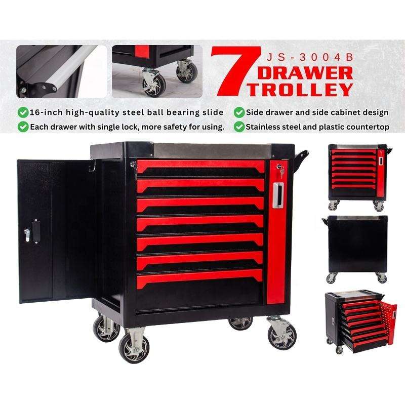 ตู้เก็บเครื่องมือโลหะแบบล็อคได้ 7 ลิ้นชัก พร้อมชุดเครื่องมือช่าง 5 ชุด สำหรับซ่อมรถยนต์และจัดเก็บในโรงรถ