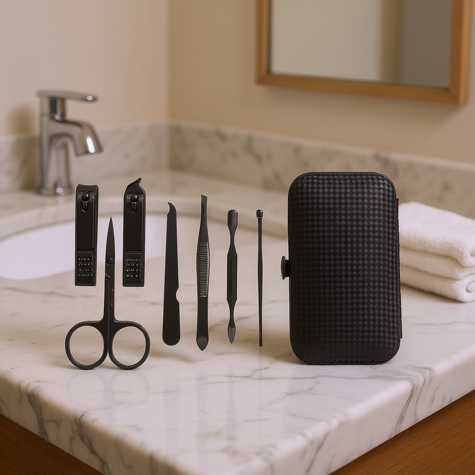 ชุดทำเล็บสแตนเลสคลาสสิก 7-in-1 พร้อมกล่องพกพาสำหรับผู้ใหญ่ กรรไกรตัดเล็บ, กรรไกร, แหนบ, อุปกรณ์ดูแลหนังกำพร้า, ชุดอุปกรณ์