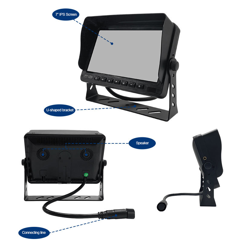 กล้องติดรถยนต์2Ch 7นิ้ว, กล้องมองหลังรถยนต์ LED อินฟราเรดมองกลางคืนพร้อมสายต่อขยาย4ขา