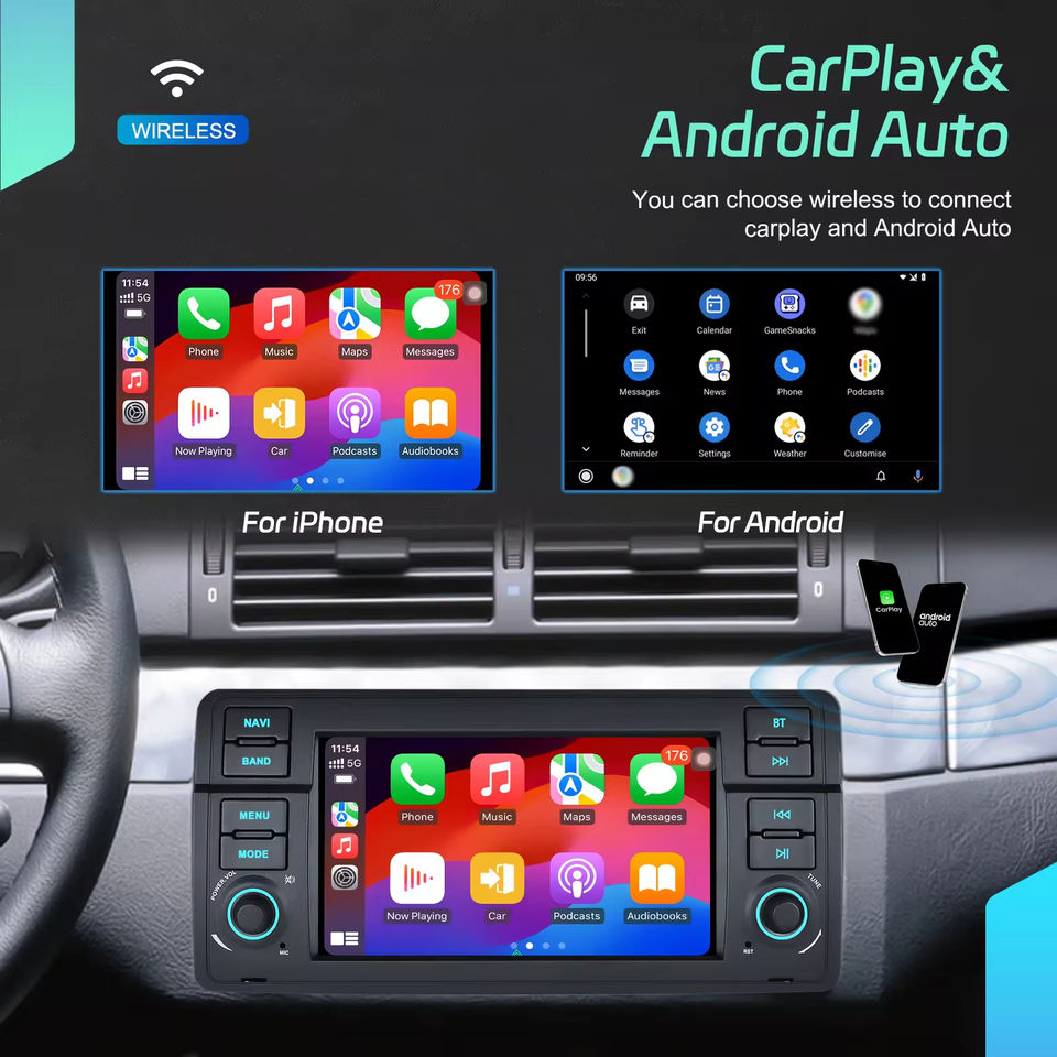 วิทยุติดรถยนต์ระบบแอนดรอยด์ขนาด 7 นิ้ว Podofo 4+64GB รองรับ Wireless CarPlay และ Android Auto สำหรับรถยนต์ BMW 3 E46 พร้อม GPS Wifi FM RDS