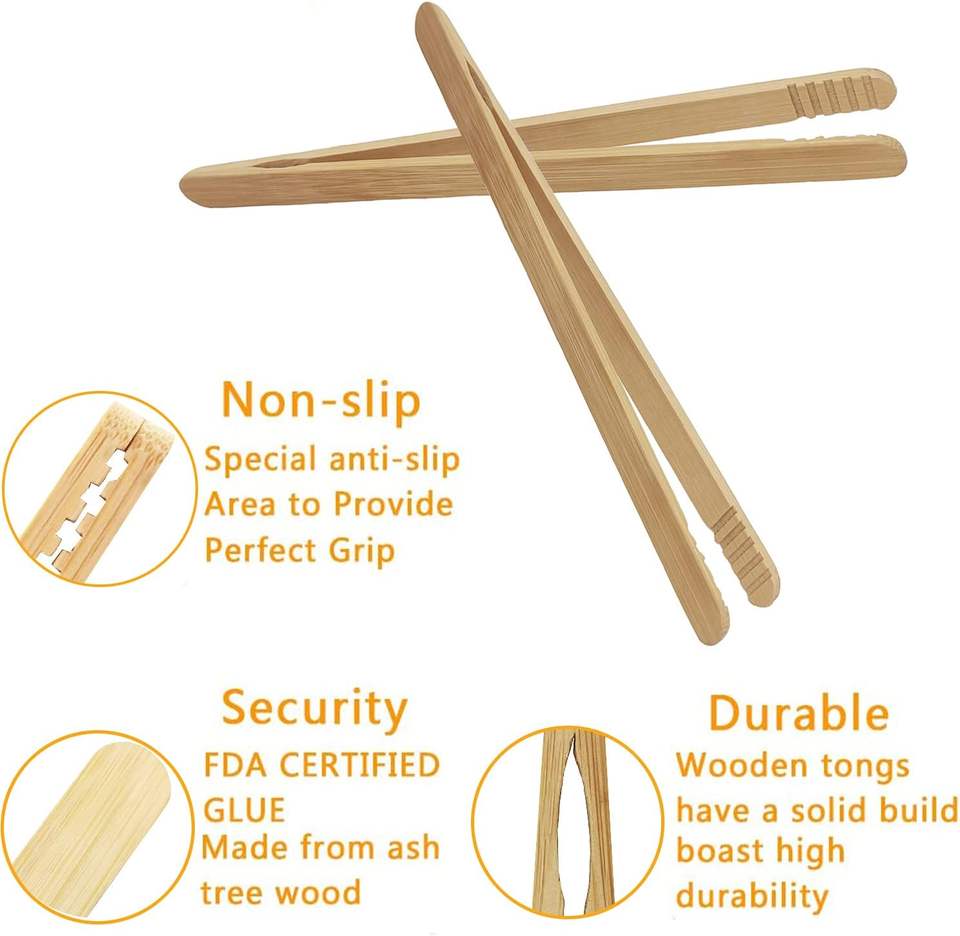 ที่คีบไม้ไผ่7นิ้วใช้ในครัวใช้ซ้ำได้คีบขนมปังปิ้งไม้ไผ่สำหรับขนมปังปิ้งกิมจิผลไม้และชา8ชิ้น