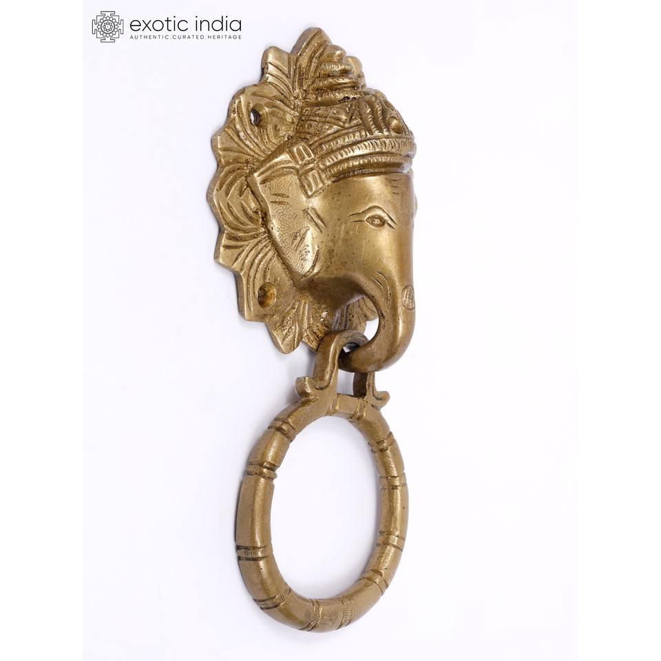ที่เคาะประตูทองเหลืองทำด้วยมือขนาด7นิ้วของตกแต่งบ้านของเจ้านายพระพิฆเนศที่มีเอกลักษณ์และการออกแบบที่หรูหราผลิตในอินเดีย