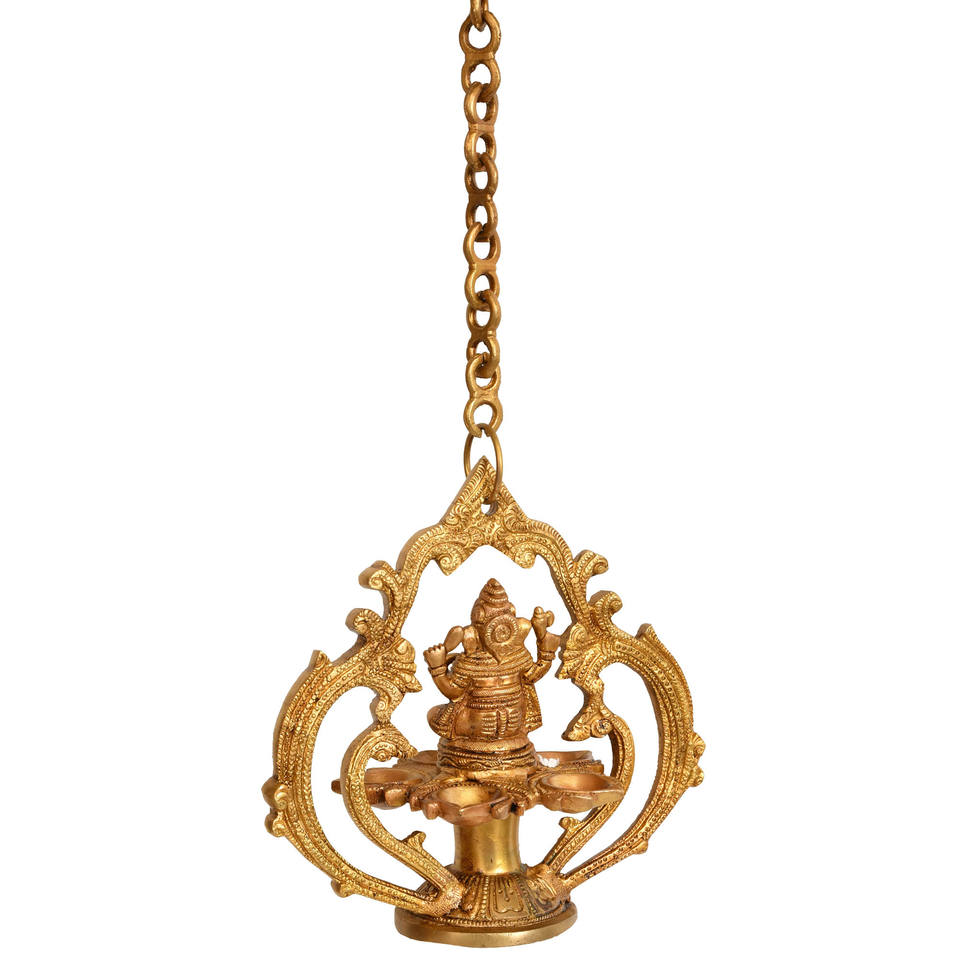 พระพิฆเนศ7นิ้วทำด้วยมือโคมไฟห้าไส้ตะเกียงทองเหลืองสำหรับตกแต่งบ้านและให้เป็นของขวัญผลิตในอินเดีย