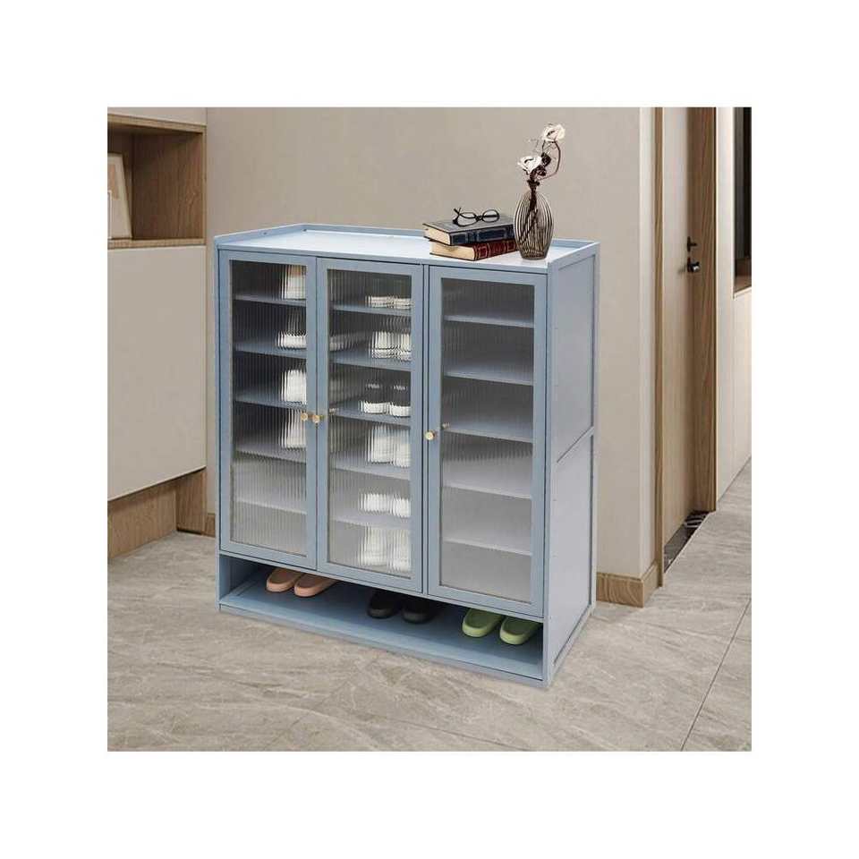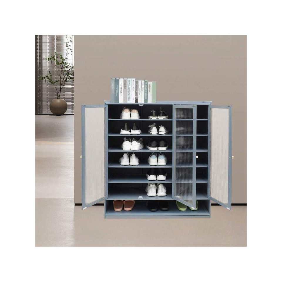 7-Layer Bamboo Freestanding Shoe Cabinet Vertical Front Door Entrance Organizer with 3 Doors for Dorm Garage Home Shoe Rack