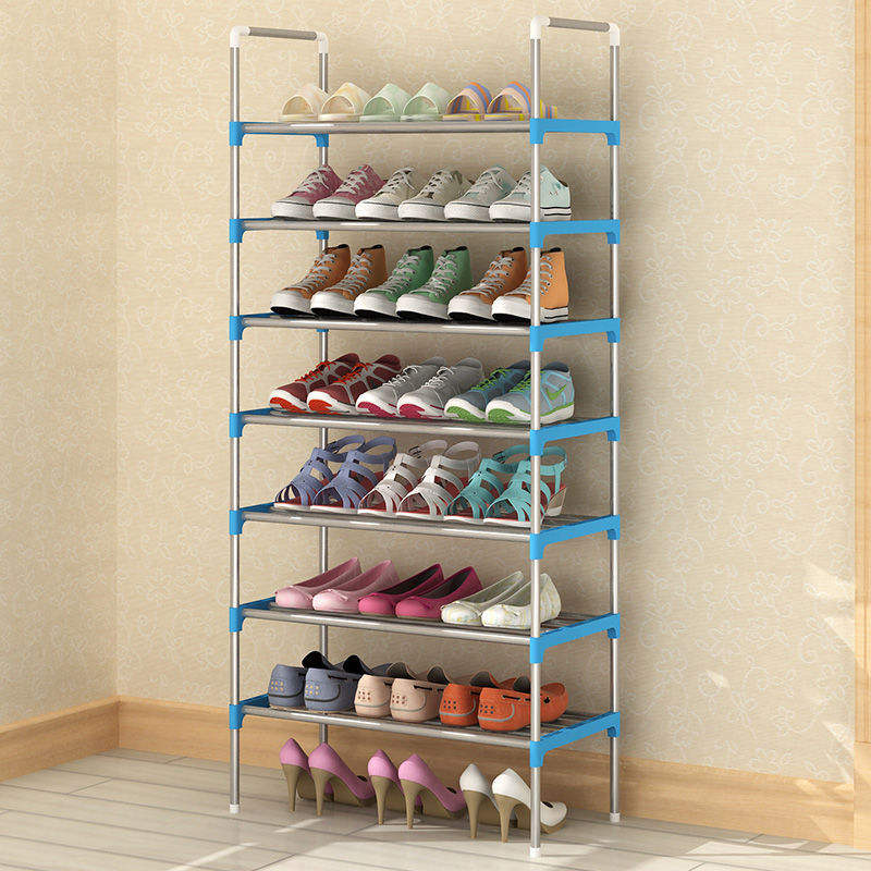 ชั้นวางรองเท้า 7 ชั้น แข็งแรง ทนทาน กันฝุ่น ดีไซน์เรียบง่าย ตู้เก็บรองเท้าสำหรับทางเข้าบ้าน ห้องเช่า ชั้นวางของเหล็กสำหรับนักเรียน