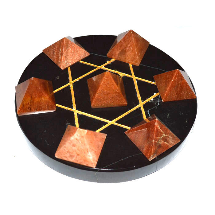 ลูกบอลและลูกโลกอะเวนเจอรีนสีพีช 7 ลูกบนฐานดาวหกแฉกสีดำทอง - ของสะสมงานแกะสลักศิลปะตามหลักฮวงจุ้ยเพื่อความรัก