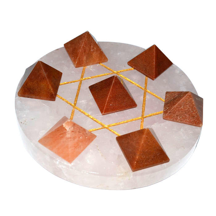 7พีช Aventurine ปิรามิดบนดาวิดฐานสีดำ
