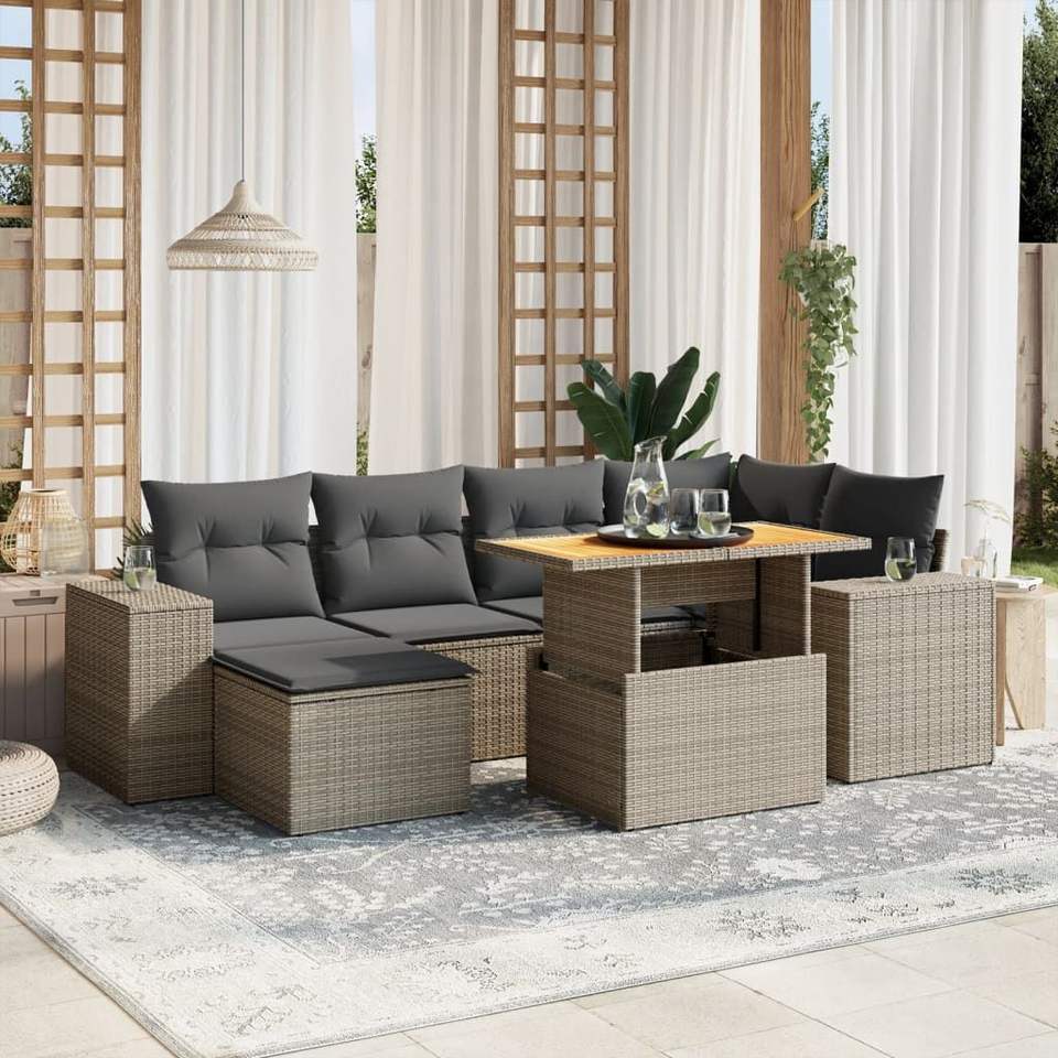 ชุดโซฟาสวนปรับระดับได้ 7 ชิ้น สีเทา ทำจากหวาย PE เฟอร์นิเจอร์กลางแจ้งที่นั่งสบาย