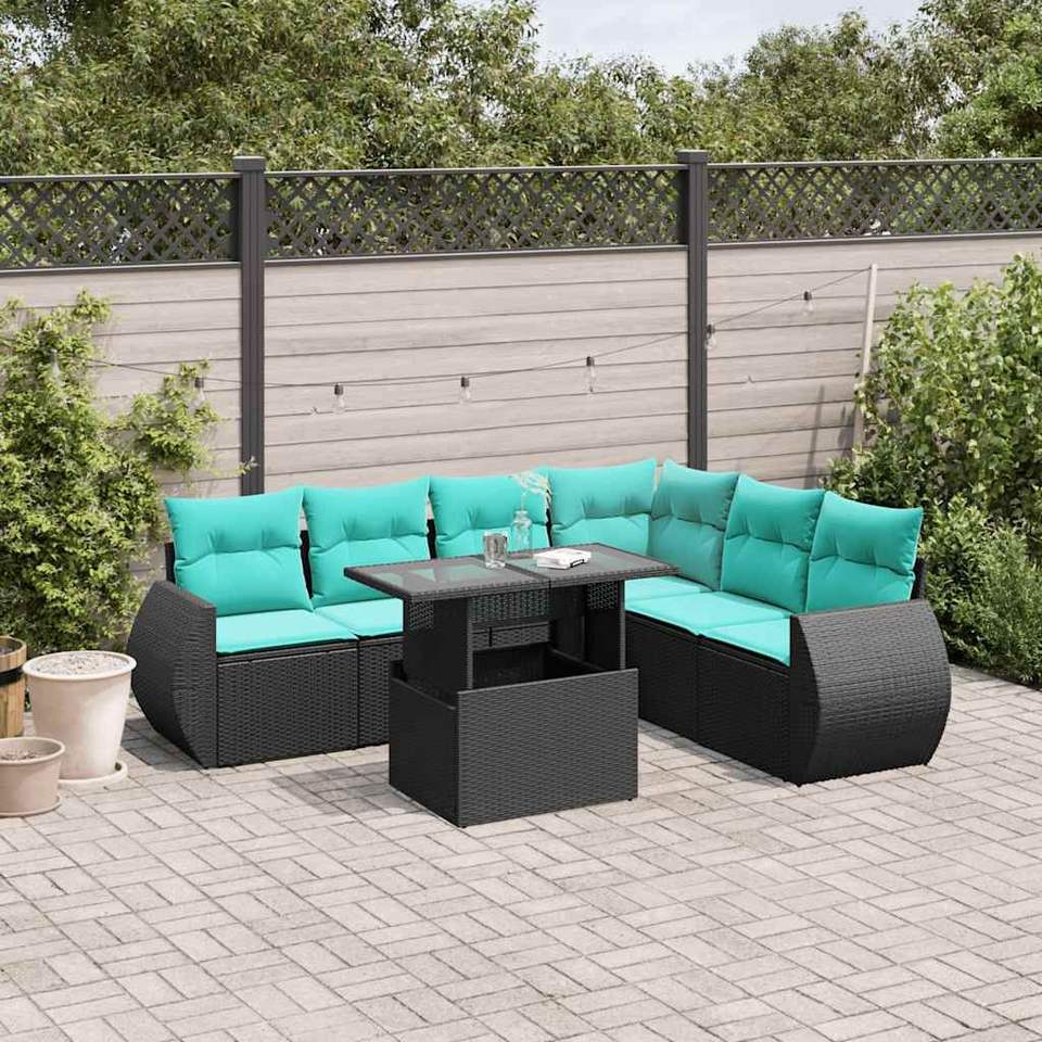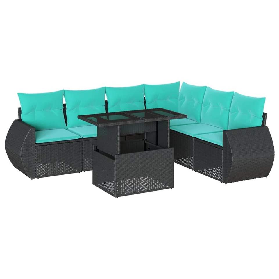 ชุดโซฟาสวนหวายโพลีสีดำ 7 ชิ้นพร้อมเบาะรองนั่ง