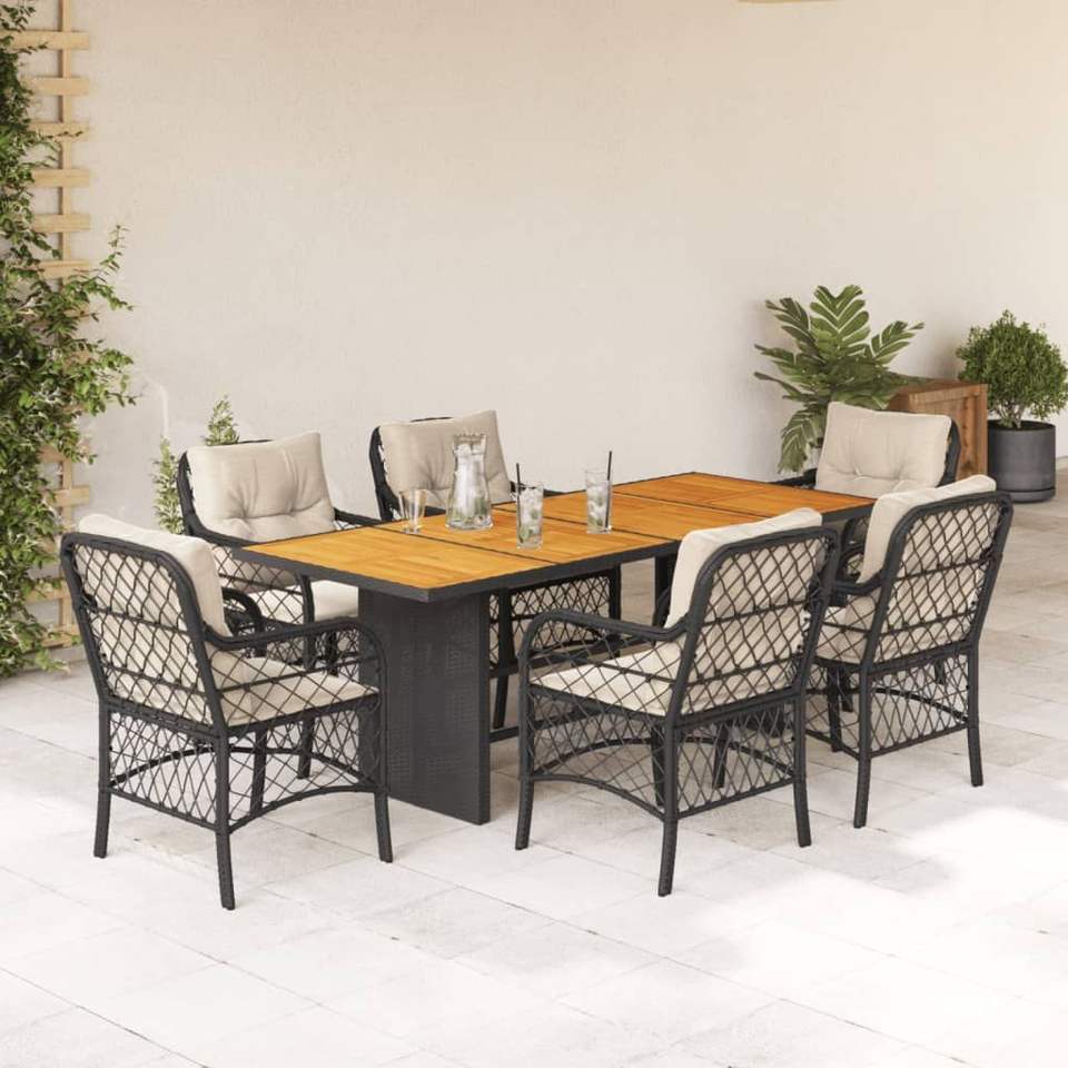 ชุดรับประทานอาหารหวายโพลีสีดำ7ชิ้นพร้อมเบาะรองนั่งเฟอร์นิเจอร์กลางแจ้งที่ทันสมัย