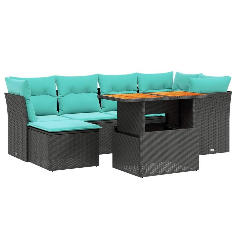 ชุดโซฟาลานบ้านหวายโพลีสีดำ 7 ชิ้นพร้อมเบาะรองนั่ง ชุดสวนสวยหรู