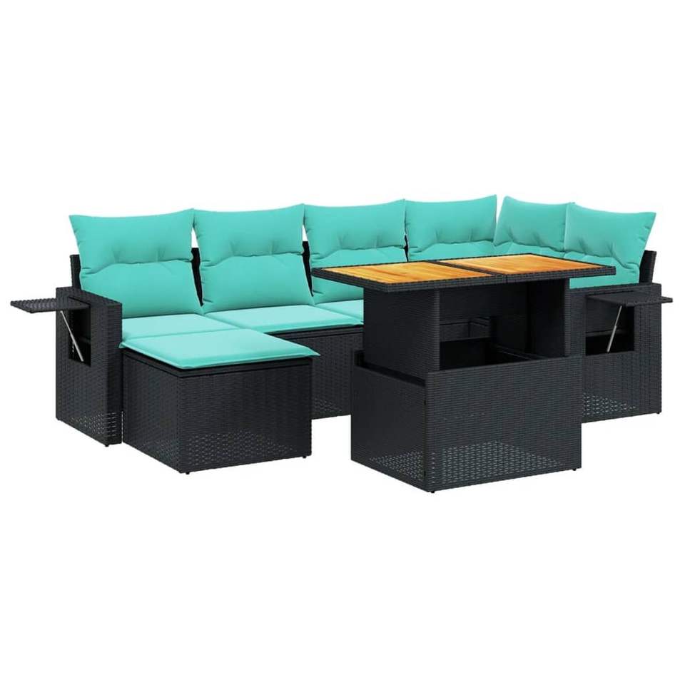 ชุดโซฟาลานบ้านหวายโพลีสีดำ 7 ชิ้นพร้อมเบาะรองนั่ง ชุดสวนสวยหรู