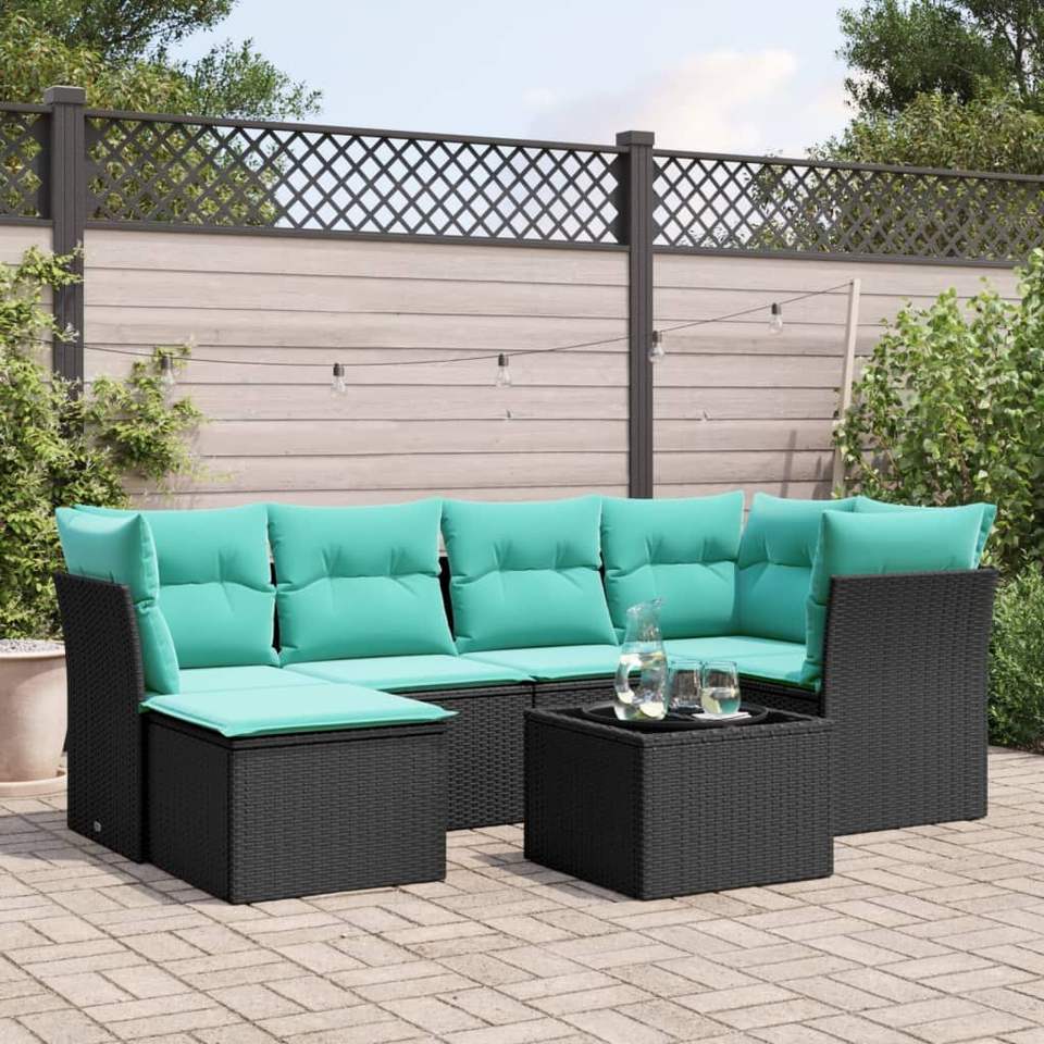 ชุดโซฟาลานบ้านหวายโพลีสีดำ 7 ชิ้นพร้อมชุดเบาะรองนั่งในสวน