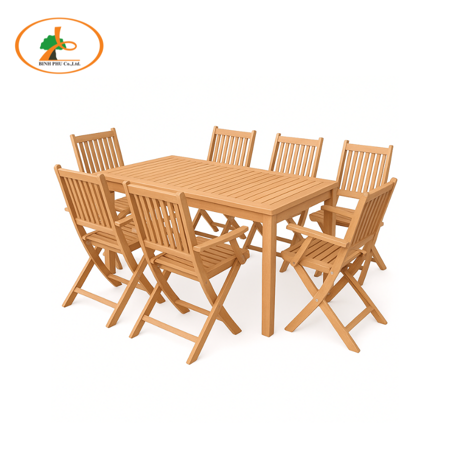 ชุดรับประทานอาหารไม้ยูคาลิปตัส7ชิ้นดีไซน์ทันสมัยชุดรับประทานอาหารกลางแจ้งชุดสวนที่ทนทานสำหรับลานและลานไม้สำหรับวิลล่า